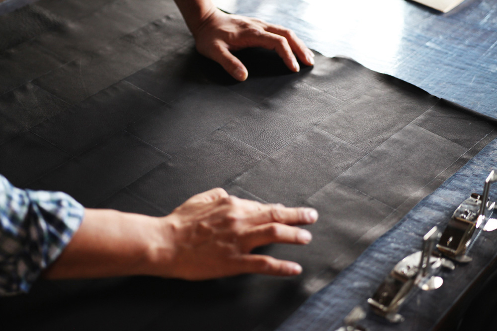 「漉く」、「継ぐ」という方法で生まれた「SUKI-TSUGI」の革。この貼り合わせの技術は、ハシモト産業の職人たちによるもの。(Photography: © yes-craft inc)