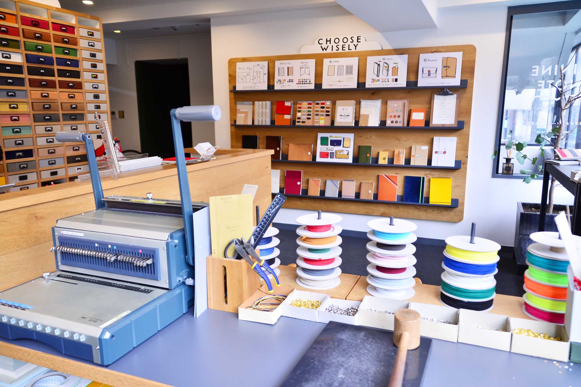 そんなノートは、自分らしいものが嬉しい。そこで、代々木八幡にあるノート屋さん「HININE NOTE(ハイナイン・ノート)」へ。ここでは表紙や紙、リングなどのパーツを自分で選び、“自分だけのノート”を作れます。