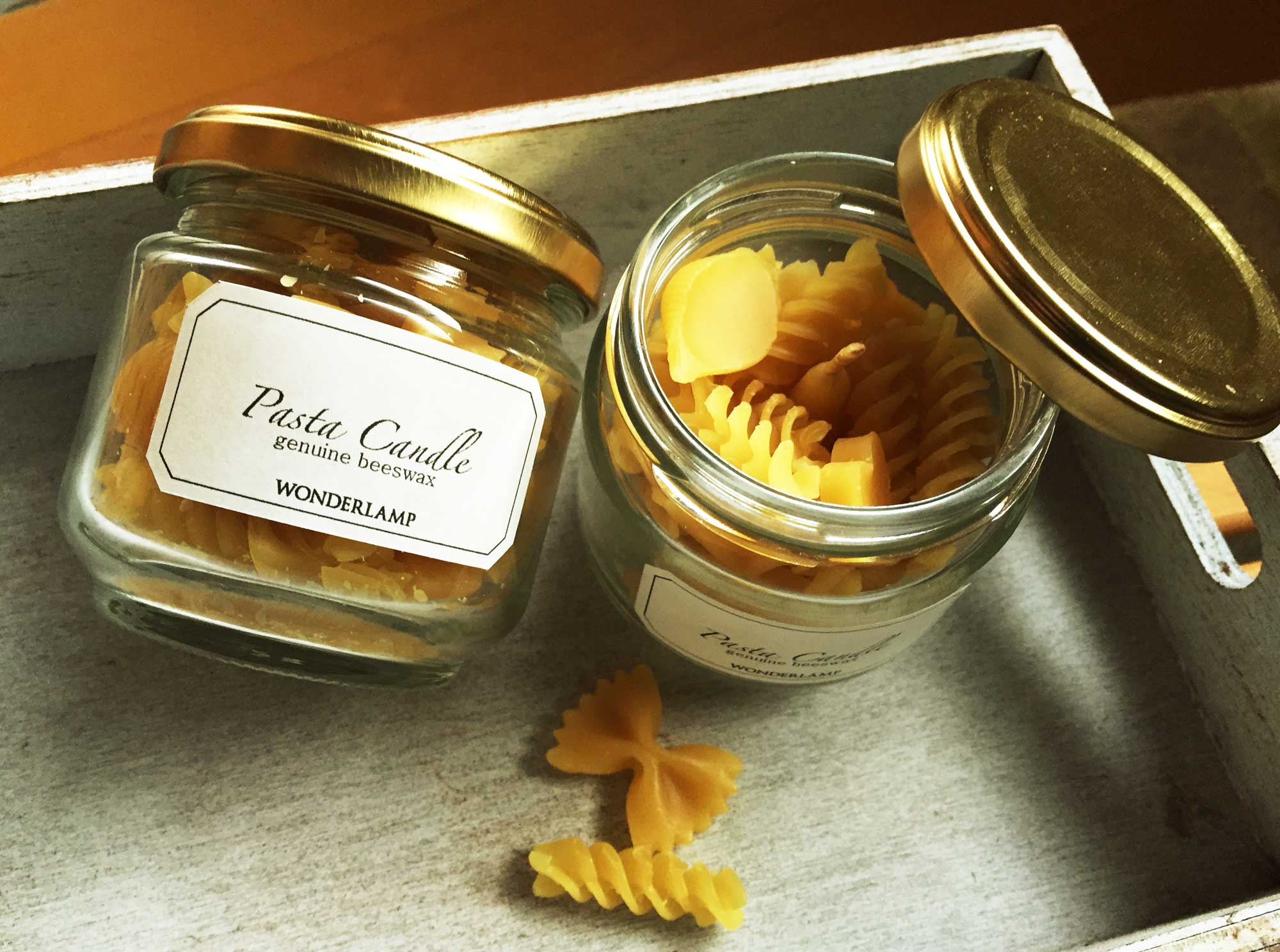こうして、蜜蝋の独特の香りがする、本物そっくりのパスタキャンドルが完成しました。