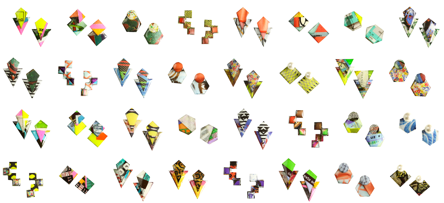ただ切り出すだけではおもしろみがなかったので、シンプルな図形に統一してコラージュすることに。それを樹脂でコーティングするだけ、というシンプルな作りになりました。